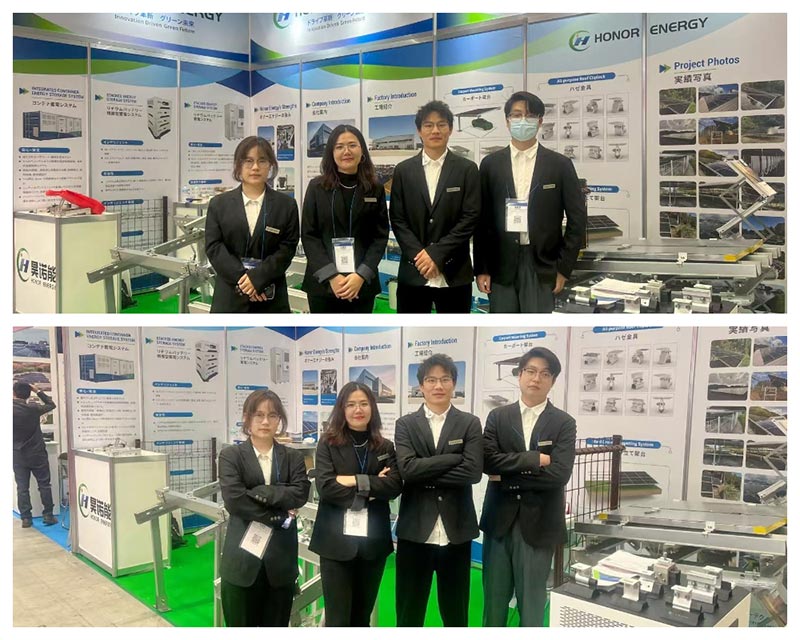 Som en ledende utstiller av fotovoltaiske monteringssystemer, viste Honor Energy sitt mangfoldige utvalg av bakkemonteringssystemer (karbonstål og aluminium), carportmonteringssystemer, takmonteringssystemer, jordbrukslandmonteringssystemer, gjerde, energilagringssystemer, klemmer og annet tilbehør, og trakk på mange års prosjekterfaring i det japanske markedet.