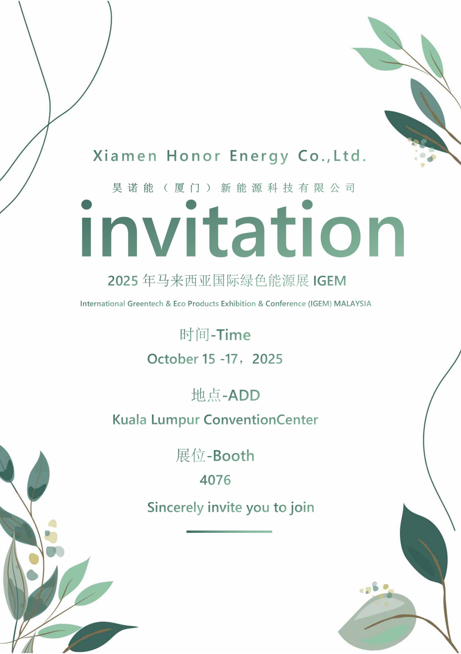 Vier fornøydfor å kunngjøre vår offisielle invitasjon til deg for 2025 Malaysia International Green Energy Exhibition (IGEM).