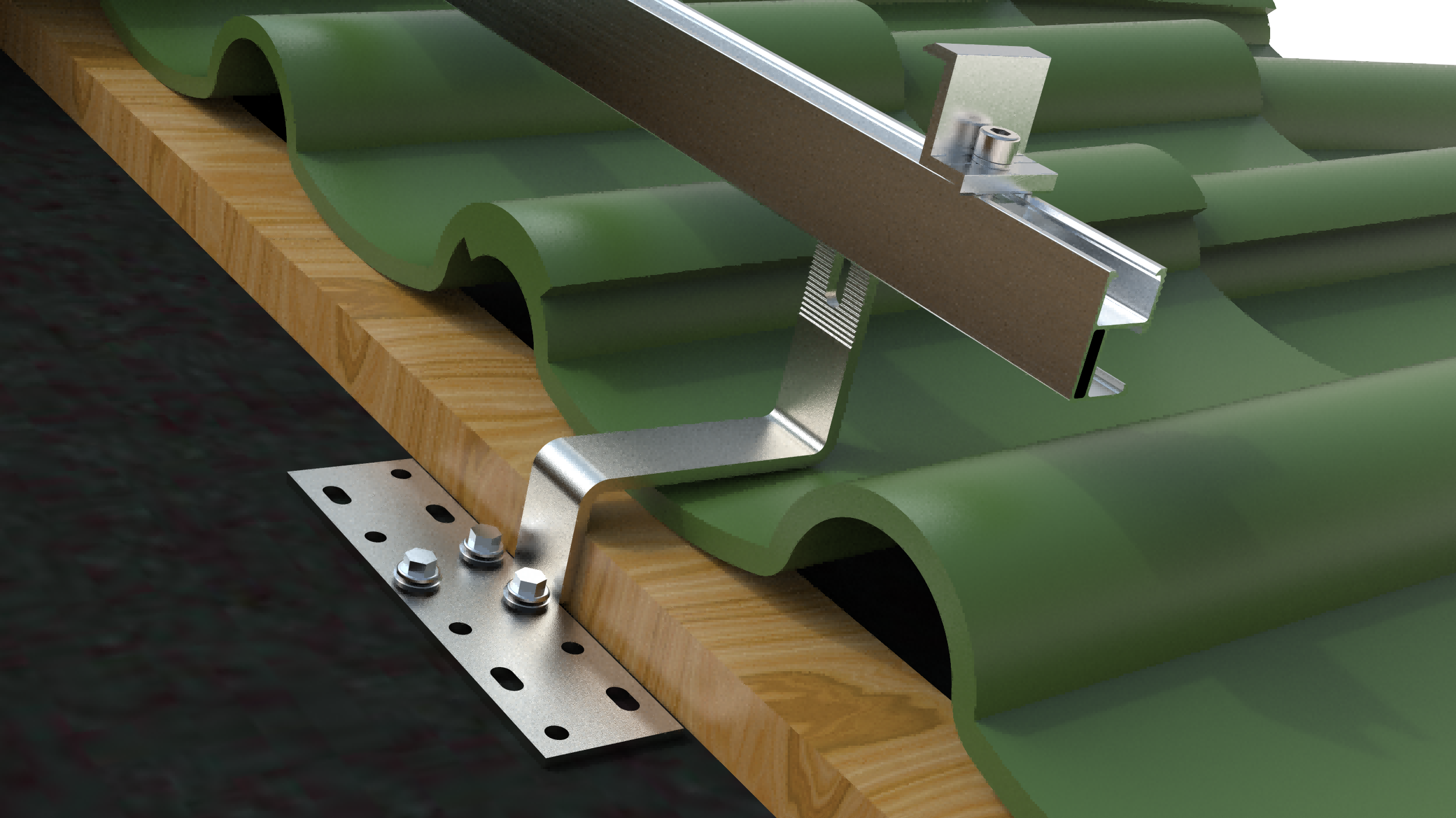 Vi bruker kroker på tegltaket, som er en allsidig og holdbar løsning designet for sikker montering av solcellepanel på ulike tegltak. Vi har forskjellige former for kroker slik at vi bedre kan møte kravene til kundene våre.