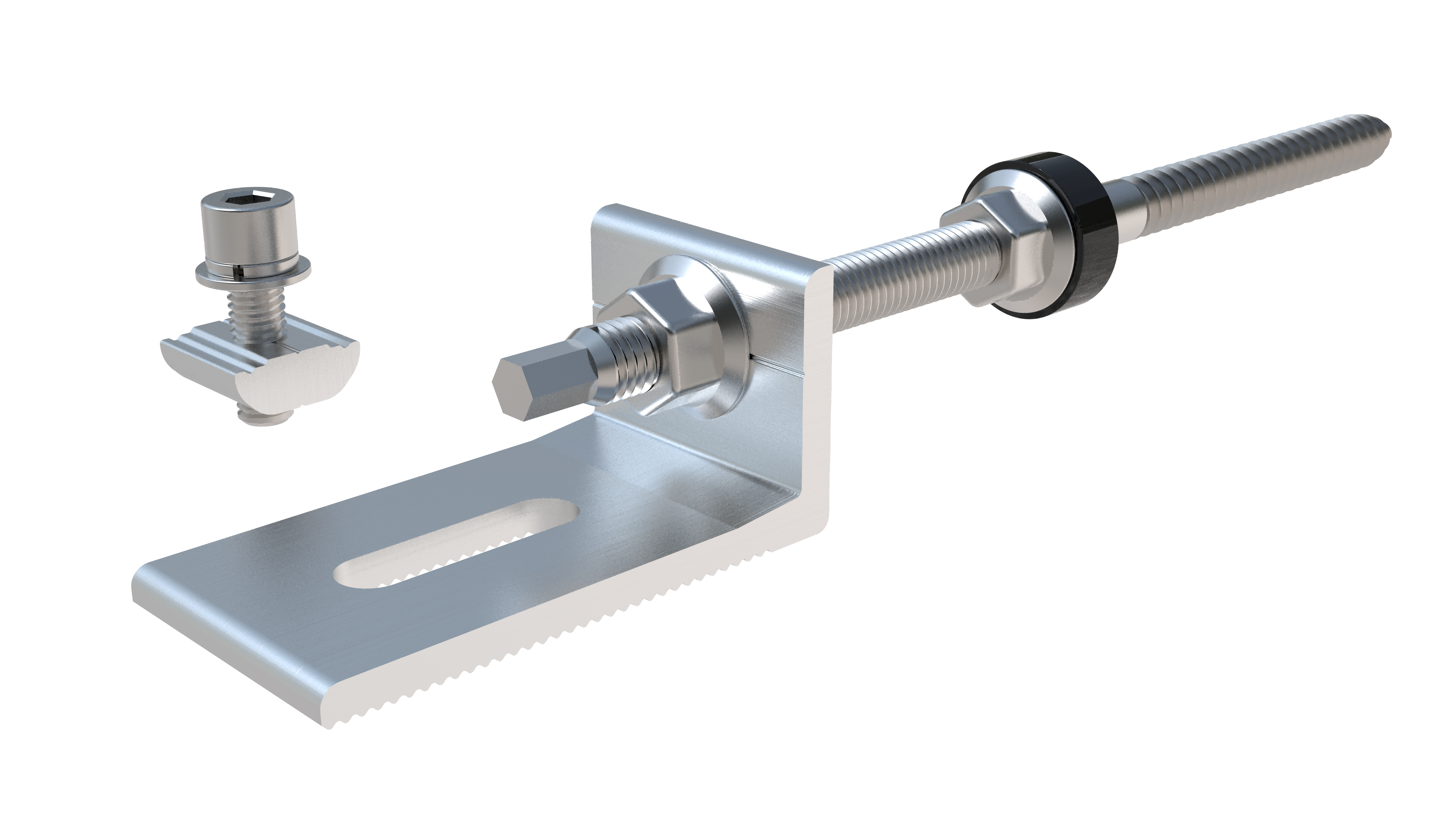 Metal Solar Roof L føtters form, tro mot navnet, er L-formet. It connects the roof to the rail through its unique form, but don't underestimate its strength—our engineers perform calculations to ensure it can withstand wind loads effectively. Selv om det krever boring av hull i taket, har det utmerket vanntettingsytelse og vil aldri lekke.
