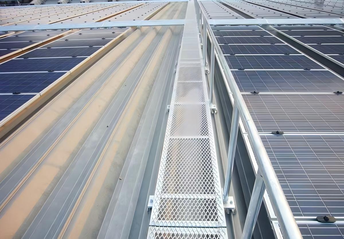 Solar gangvei er en ekstremt ofte brukt solcellekomponent, vanligvis installert for å lette bedre vedlikehold av solsystemet. Den fordeler også belastninger gjennom dedikerte gangveier for å forhindre skade på det vanntette laget eller taklekkasjer forårsaket av hyppig bevegelse av personell.
